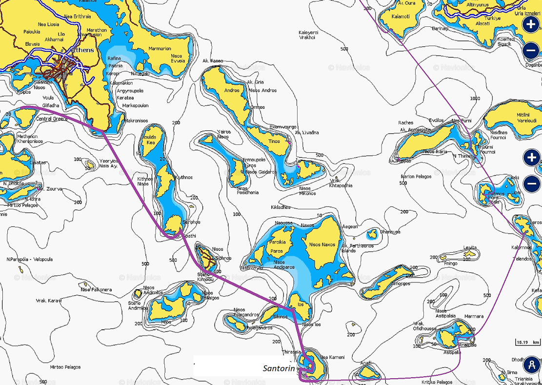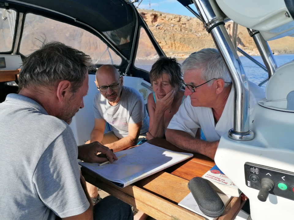 De retour à bord, nous faisons le point sur les prévisions pour l'étape suivante, qui doit nous conduire à Léros .