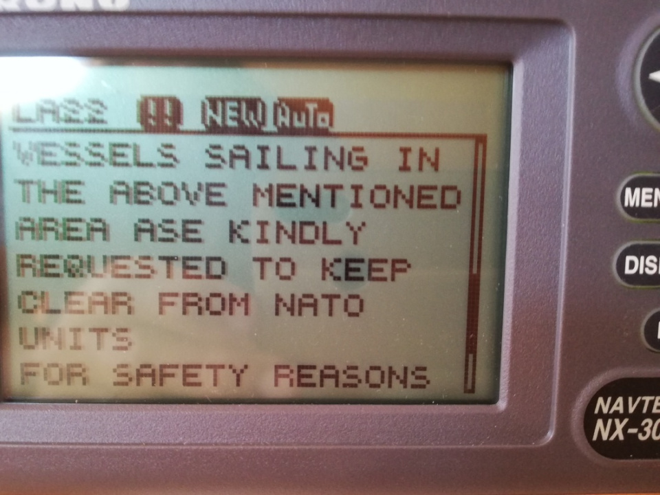 Ce déploiement de forces ne me surprend pas, car j'ai déjà reçu plusieurs messages sur le NAVTEX comme celui-ci :