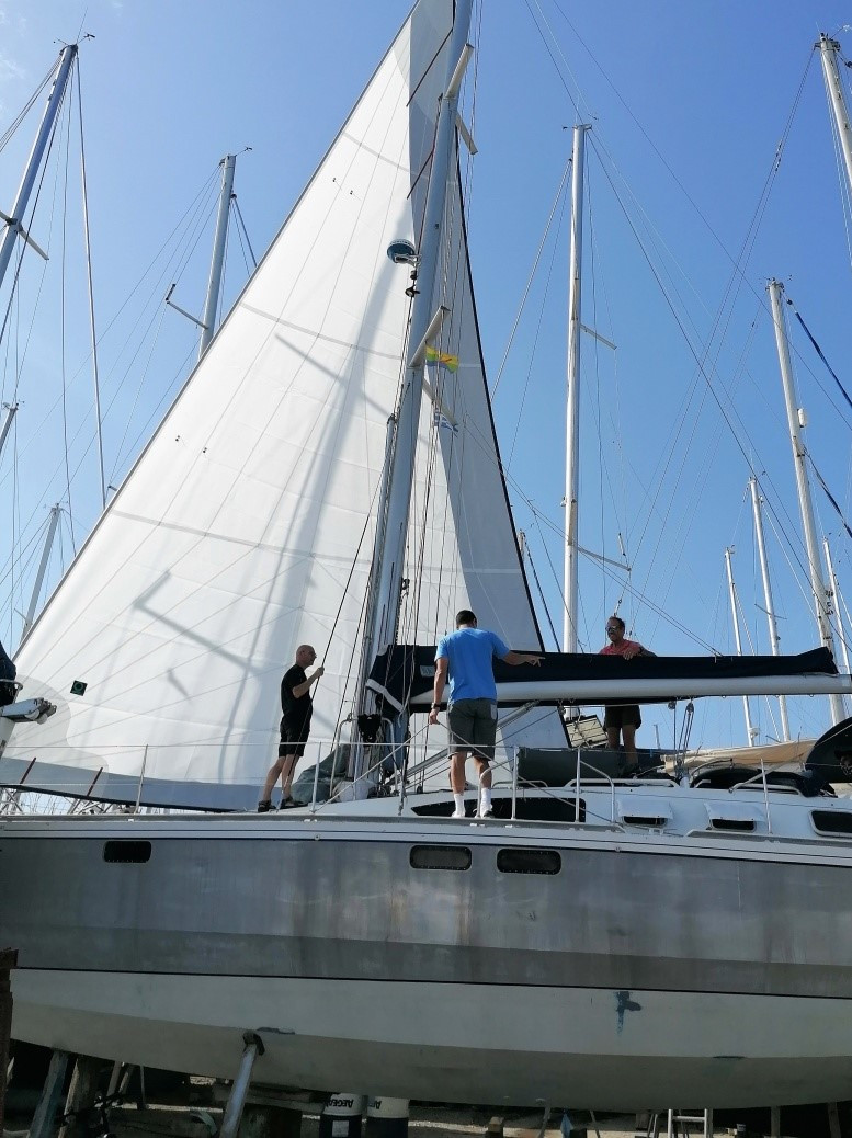 C'est la fête quand Patroclos, de "Quantum Sails - Athènes", avec qui j'ai traité, vient procéder à l'installation ce mardi 8 au matin !