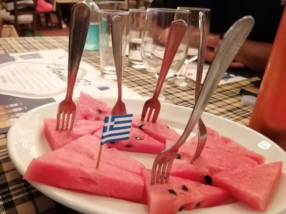 Descente à terre pour aller jusqu'à la très modeste taverne, sur la plage. Par signes, nous finissons par nous faire comprendre du couple qui tient l'établissement, pour nous faire servir des boissons et quelques mezzés.