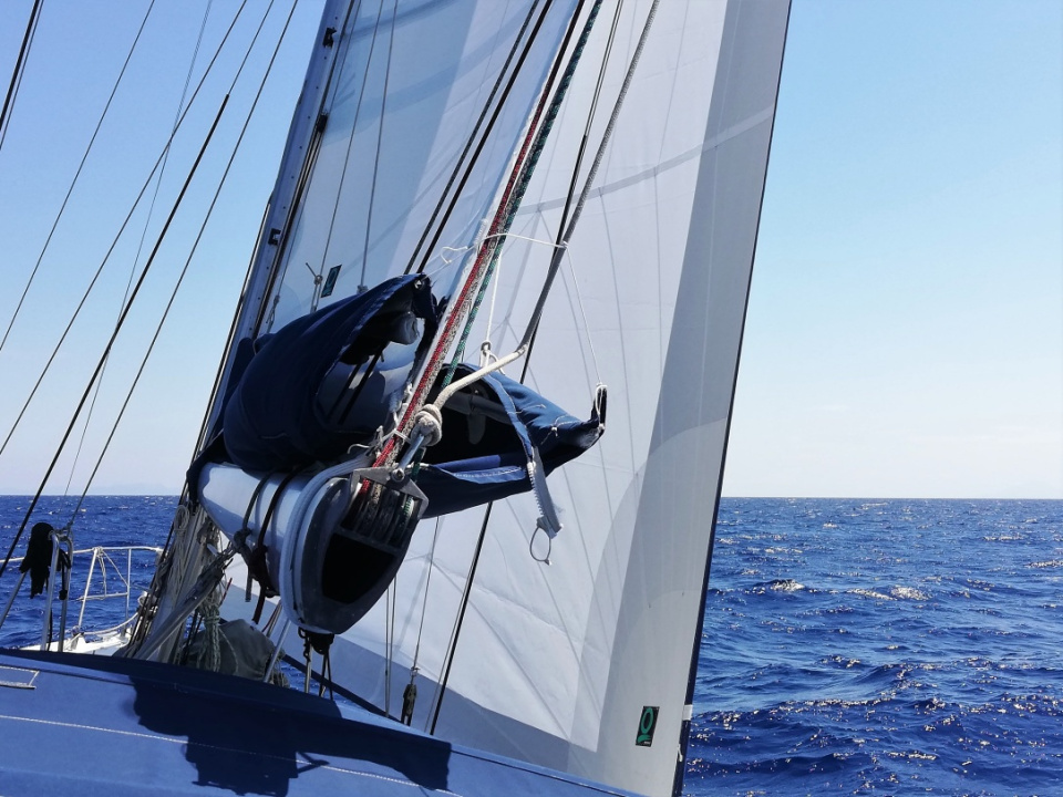 D’autant plus que j'ai décidé au printemps d'équiper le bateau de voiles neuves : nouvelle grand-voile entièrement lattée, avec amélioration de la circulation des bosses de ris, et surtout magnifique génois triradial .