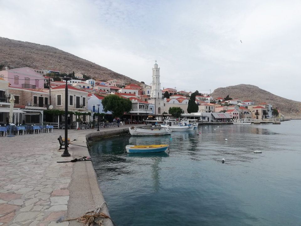 Après avoir quitté le port, nous doublons la pointe nord de l’île de Rhodes, puis mettons le cap au sud-ouest, vers l’ile de Chalki.
