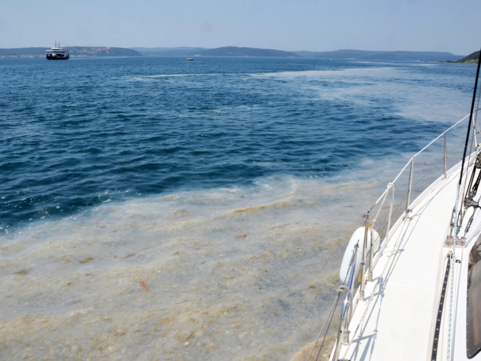 L'eau serait belle et transparente, mais des paquets blanchâtres circulent entre deux eaux, au gré d'un faible courant : ce sont les premières manifestations de la fameuse "morve de mer"... Pas tentant de se baigner dans ces conditions...