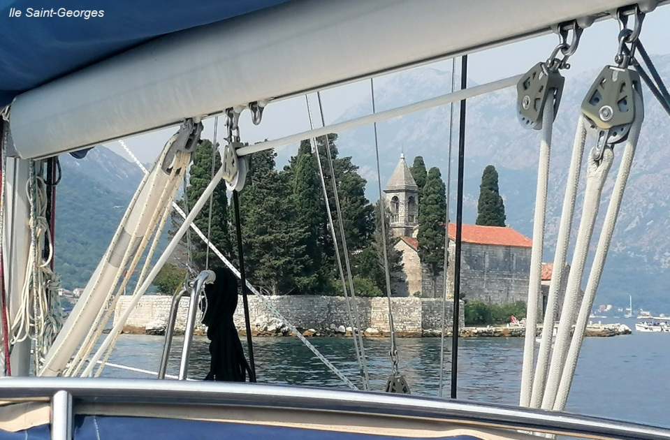 puis mouillage devant l'ancien village de pêcheurs de Sveti Stepan (devenu hôtel de luxe, temporairement fermé);