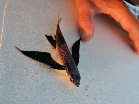 Au lever du soleil, nous découvrons un poisson volant échoué sur le pont... Changement de pavillon de courtoisie...