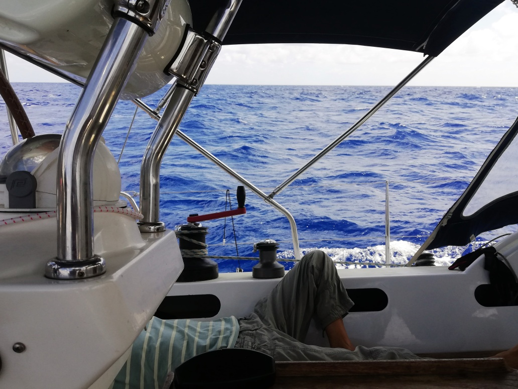 Au cours de la journée, le vent vire progressivement au bon plein, puis au travers. Le bateau marche bien, entre 6 et 7 nœuds, à la grande satisfaction de l'équipage, malgré un certain inconfort dû à la houle latérale...