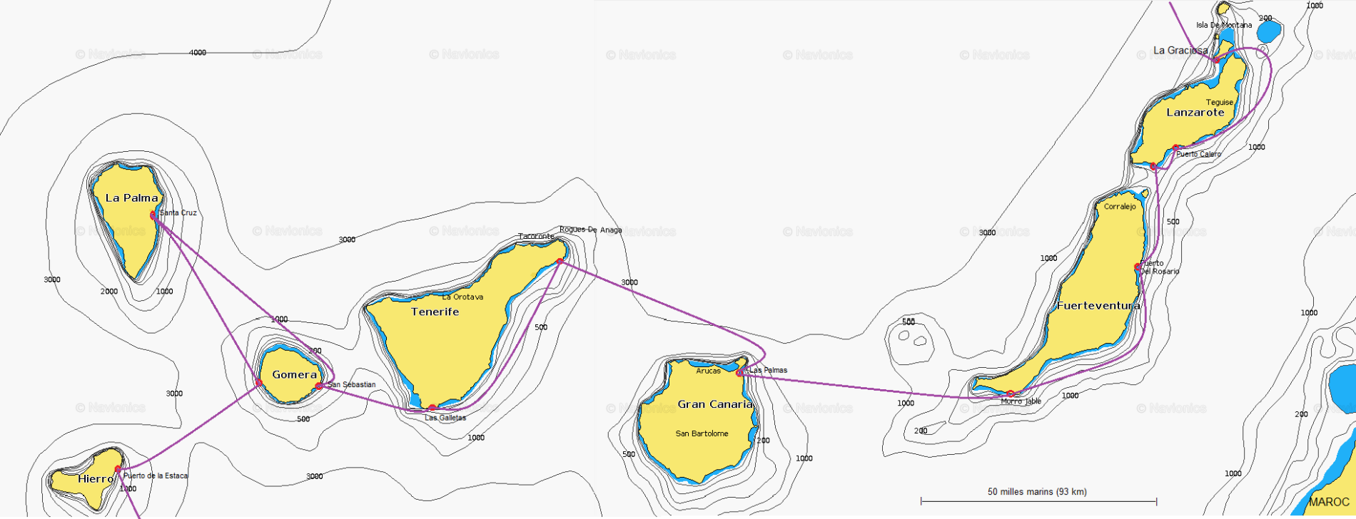 C'est ce qui a motivé nos 3 jours supplémentaires à Las Palmas, car il nous fallait attendre l'inversion d'un flux de sud, à la fois pour avoir un bon abri au mouillage, et ensuite pour une descente aisée vers le sud.