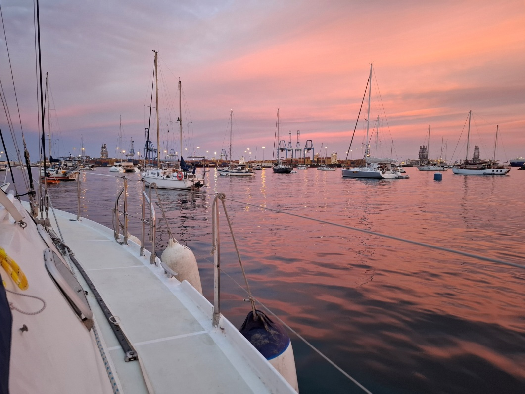 La marina de Las Palmas va être encombrée par tous les voiliers participant au rallye transatlantique de l'ARC, et il me faut négocier pour pouvoir être admis pour une durée de 4 jours. Nous sommes finalement amarrés à notre poste vers 18h30.