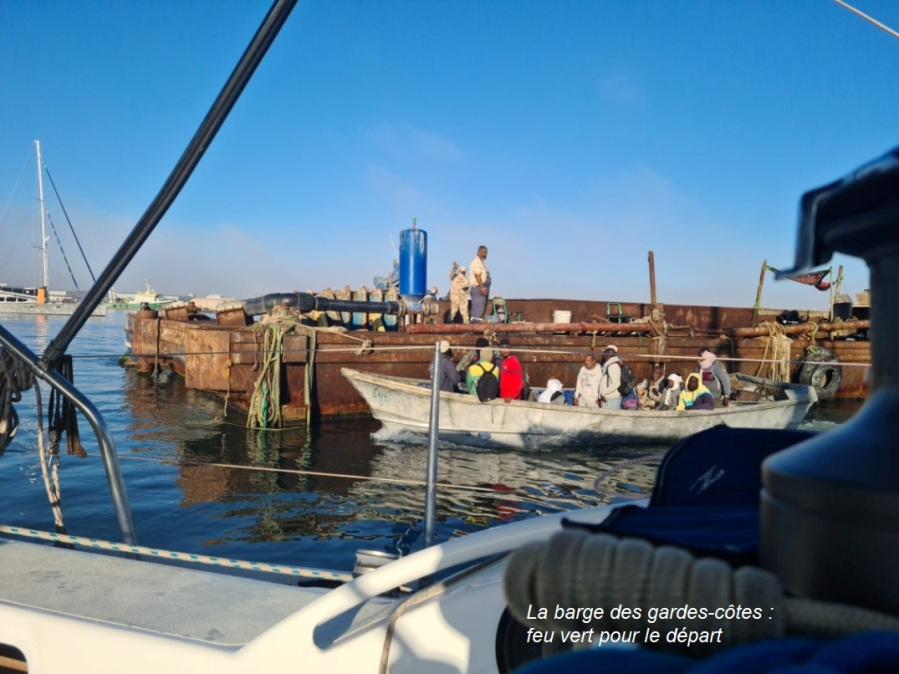 Le trajet direct des Canaries à l'archipel du Cap-Vert représenterait près de 6 jours de navigation. Nous préfèrerons le couper en 2 étapes, chacune de 3 jours, en faisant escale à Nouadhibou, en Mauritanie.