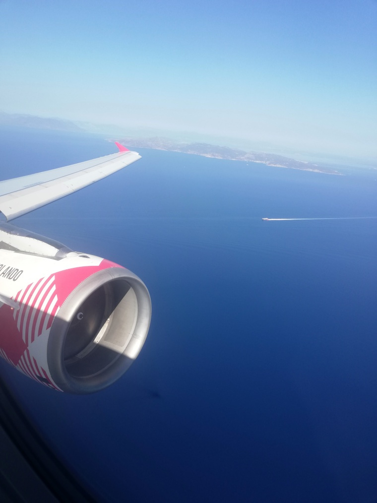Le 25 juin vers 10h, mon vol atterrit à Athènes, après une dernière approche, lors de la descente, qui m'a permis d'apercevoir l'île d'Egine, posée vers l'ouest sur le bleu intense de la mer. J'ai deviné, sans le voir, l'emplacement du chantier, et il me faut encore presque 4 heures pour le rejoindre.