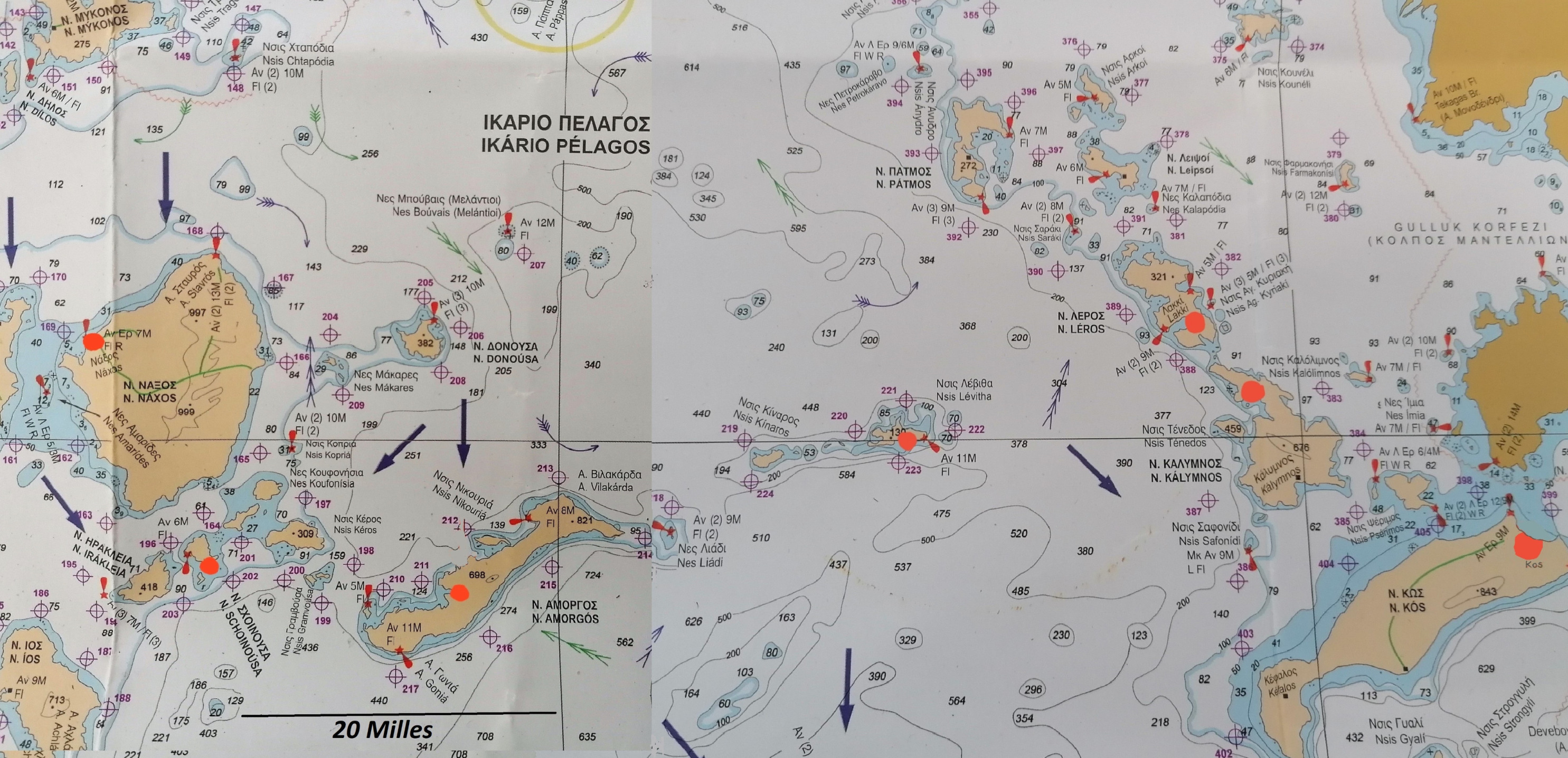 06 Août: Assez courte navigation aujourd’hui pour atteindre Naxos, voisine immédiate de Paros. Départ sous grand-voile et génois, au près, dans un vent modéré de force 4 , mais avec un courant contraire qui ralentit notre remontée.