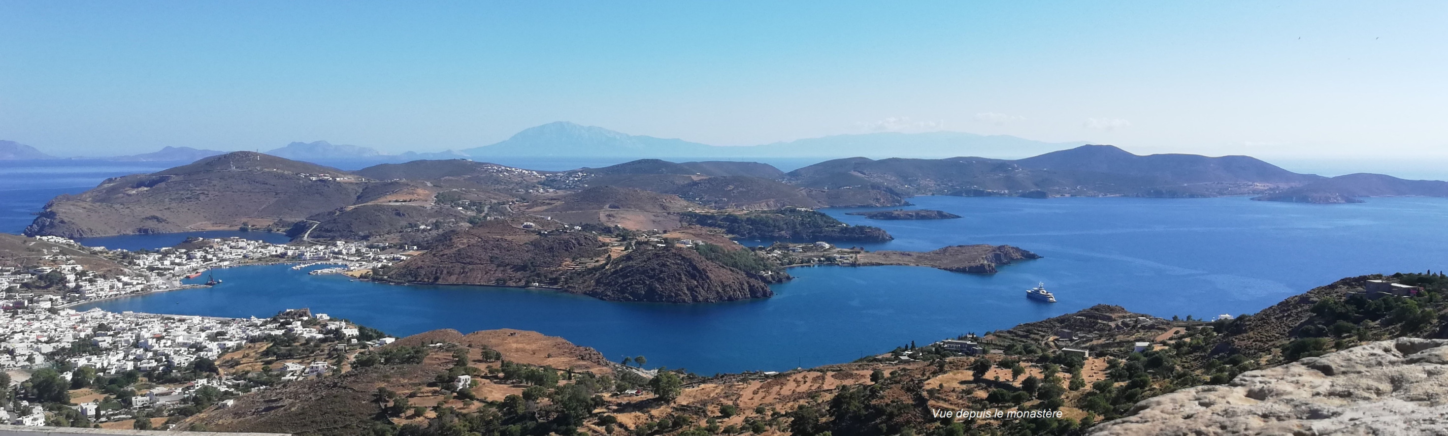 La rade magnifique est surplombée par la ville haute, elle-même groupée autour du monastère de Saint-Jean-le-Théologien, du onzième siècle.
