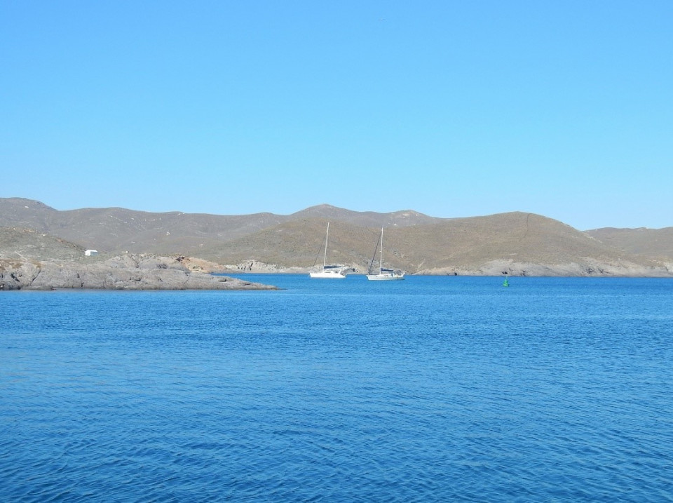 La traversée entre Patmos et Fournoï se fait au près, à bonne vitesse. Un peu avant 18h, nous nous amarrons sur ancre, et cul à la petite jetée de Kladharidhi, sur l'île de Fournoî, qui marque notre entrée dans les Sporades de l'est.