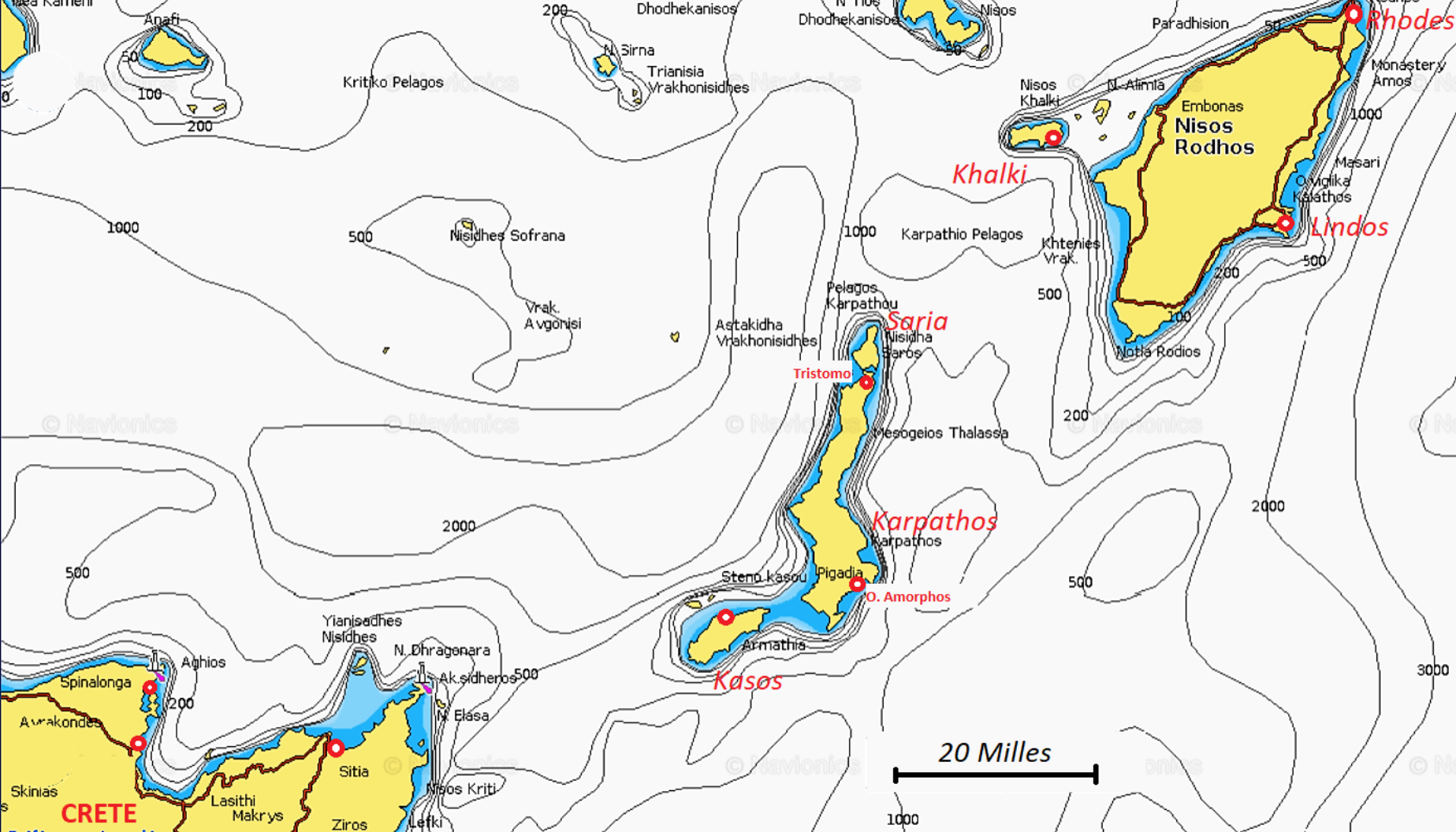 Pour les prochains jours, le but de notre navigation est d'atteindre l'est de la Crète, en passant par les îles de Karpathos et Kasos.