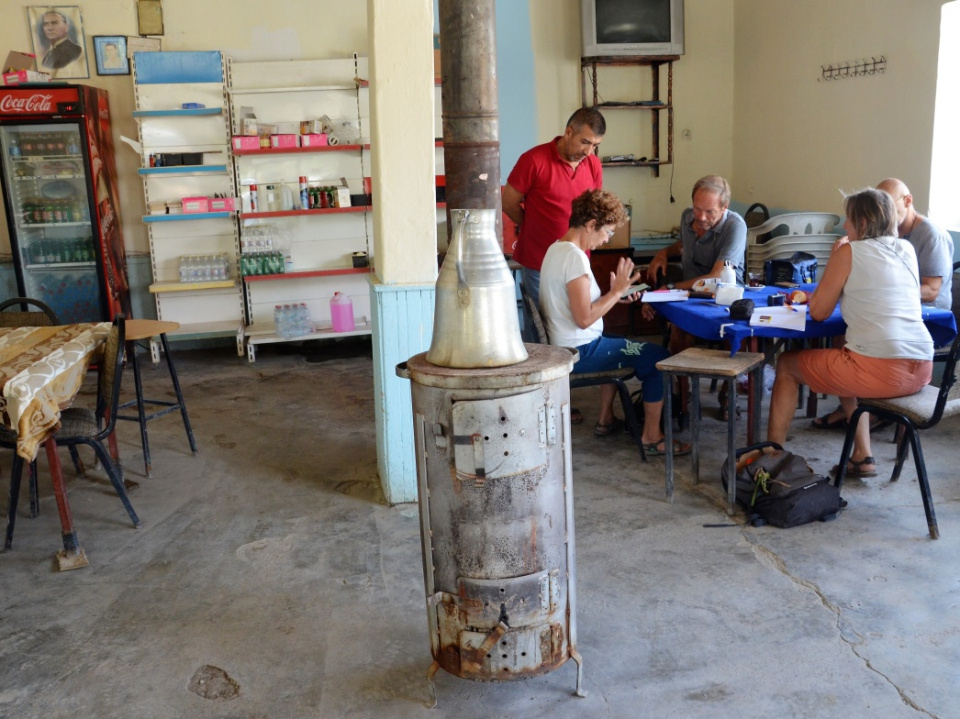 Rien d'autre à nous servir que des sodas, il faudra nous en contenter, avec quelques fruits et des chips achetées à côté. Discussions par signes, ou en allemand, avec le patron et son frère, échanges de photos, de numéros de téléphone, accolades...