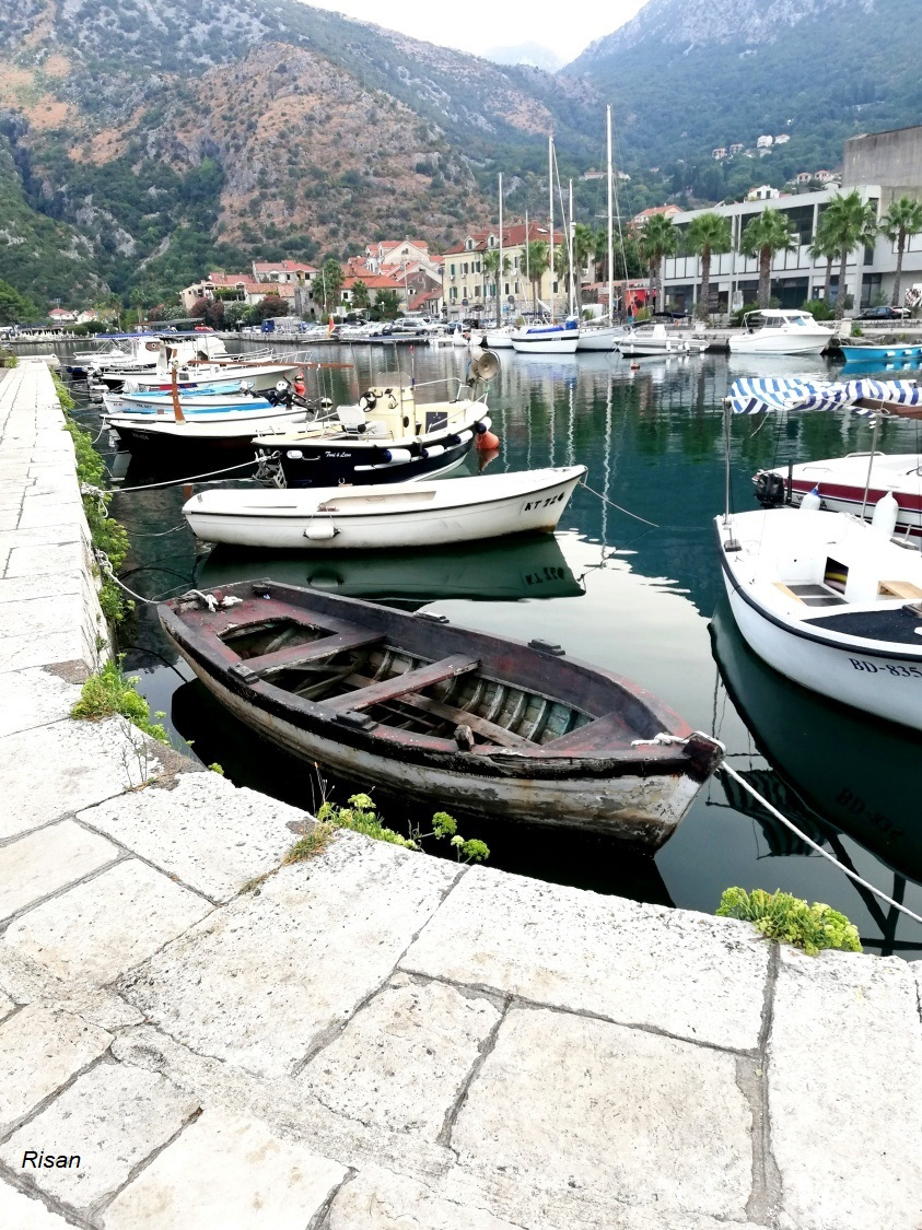 Le lendemain, navigation vers le fond des Bouches, passage devant Perast et l'île de Saint Georges, et amarrage (gratuit) au petit port tranquille de Risan (carte). Visite de la petite ville, et dégustation d'huîtres et moules, sur le ponton du producteur.