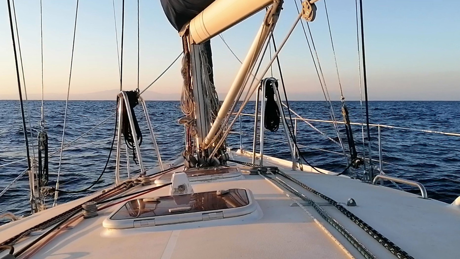 Moteur, donc, sur une mer le plus souvent d'huile... Dans la journée, les quelques bouffées d'air quand le vent se lève un peu nous sont rigoureusement contraires...