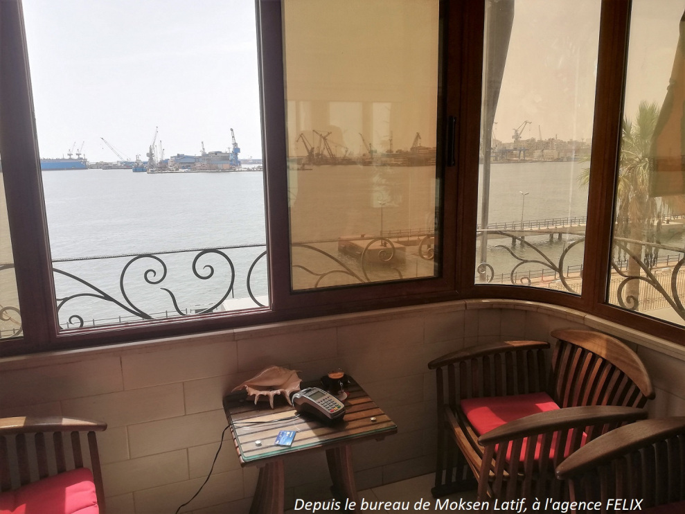 Formalités, au bureau de l'Immigration notamment, où nous nous rendons en bateau-taxi, avec notre agent, dépêchè par FELIX Agency. Notre visa, acheté à la descente d'avion, avait été annulé à Ismaïlia (pour des raisons évidentes pour les autorités, mais incompréhensibles pour nous) : il nous faut donc en reprendre un ici, afin de pouvoir nous rendre en ville demain.