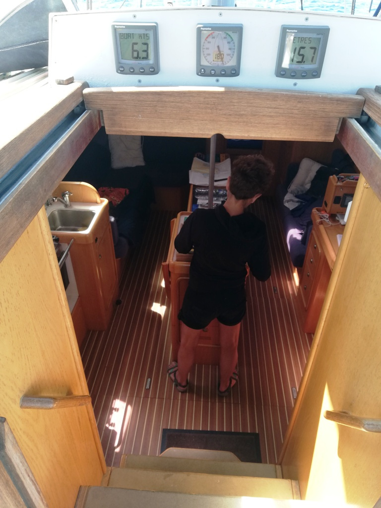 A cette allure portante, la navigation reste très confortable, et Catherine peut séjourner longuement en bas dans le carré sans être incommodée...