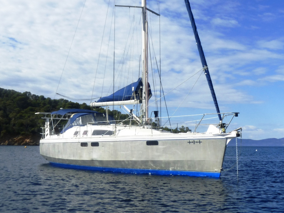 Inspection rapide des fonds, démarrage du moteur, pas de problème. Il me reste à réinstaller balancine et pataras, dont le démontage était nécessaire pour passer sous la grue, et nous pouvons appareiller.
