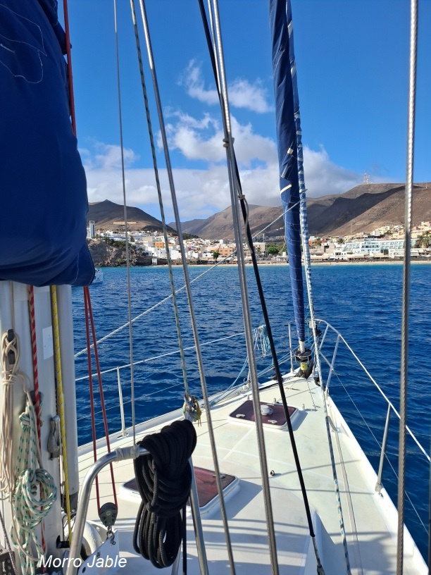 10 octobre : grande étape, pour atteindre un mouillage tout au sud de l'île, devant le village de Morro Jable.(carte)