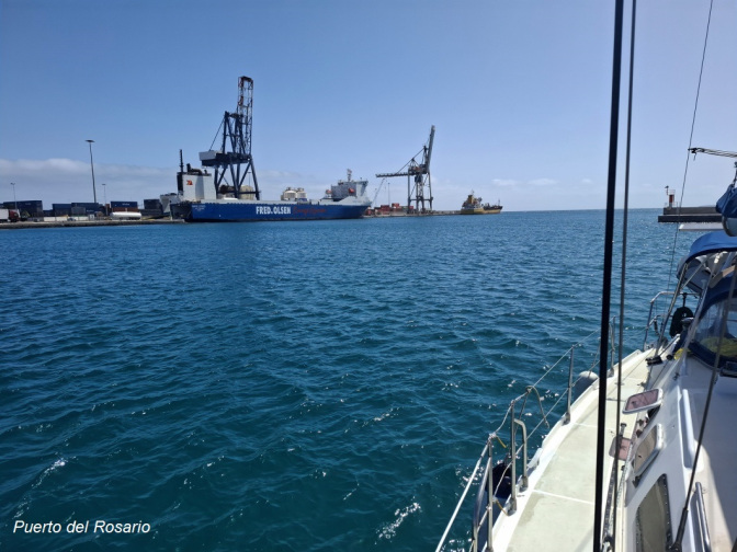 09 octobre : 08h 00 : départ matinal, car je veux arriver tôt à Puerto del Rosario, port principal de l'île de Fuerteventura. Ce port ne prend pas de réservation pour les bateaux de passage.