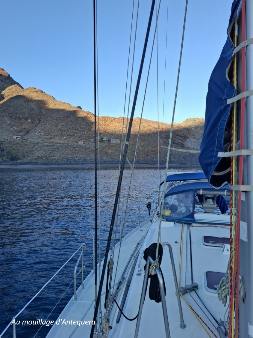 Un peu loin pour envisager une navigation à la journée... Aussi, nous avons décidé de couper le parcours en 2 étapes : une première nuit au mouillage d'Antequera, tout au nord de Ténérife, avant de descendre le lendemain jusqu'à Las Galletas.