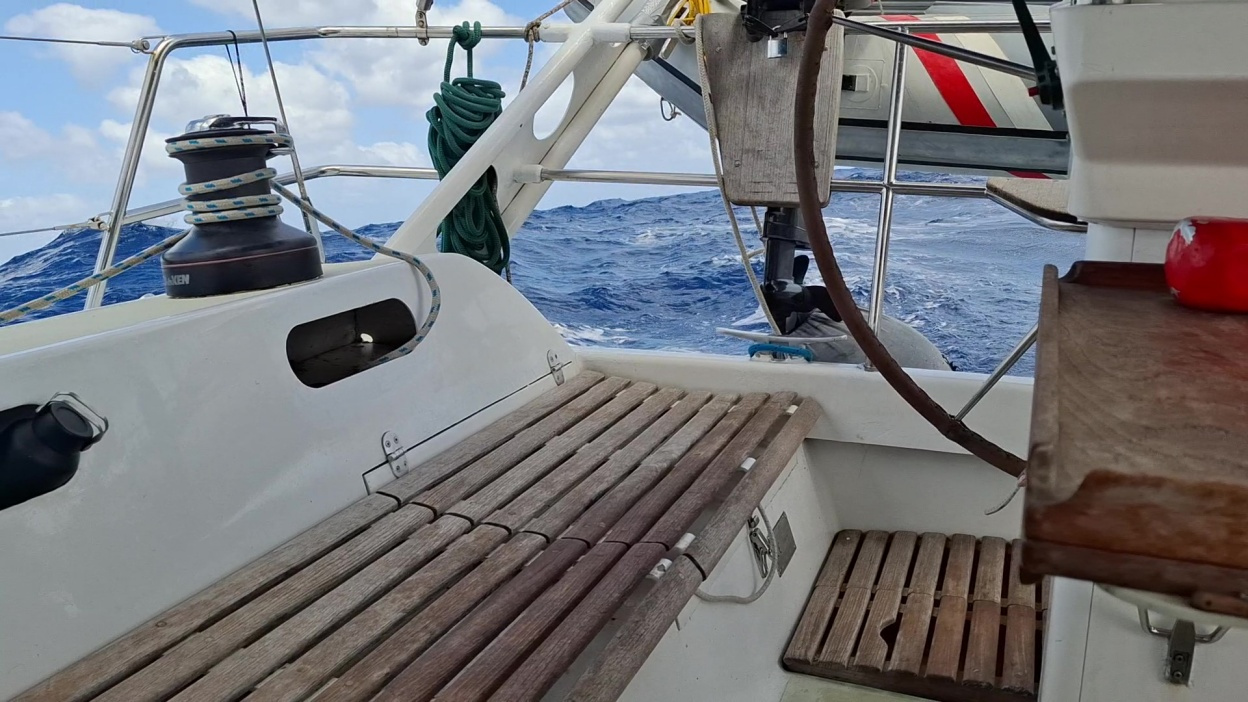 Mêmes conditions de navigation la soirée, la nuit, et le lendemain, le vent et la houle faiblissant tout de même légèrement. Le surlendemain, 24 septembre, le vent finit par baisser nettement en fin d'après-midi, et nous passons au moteur.